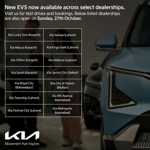 “Bold, innovative, electrifying. The future has arrived! Meet Kia EV 5, the next generation of power and style,” Kia Motors Pakistan said in a Facebook post.