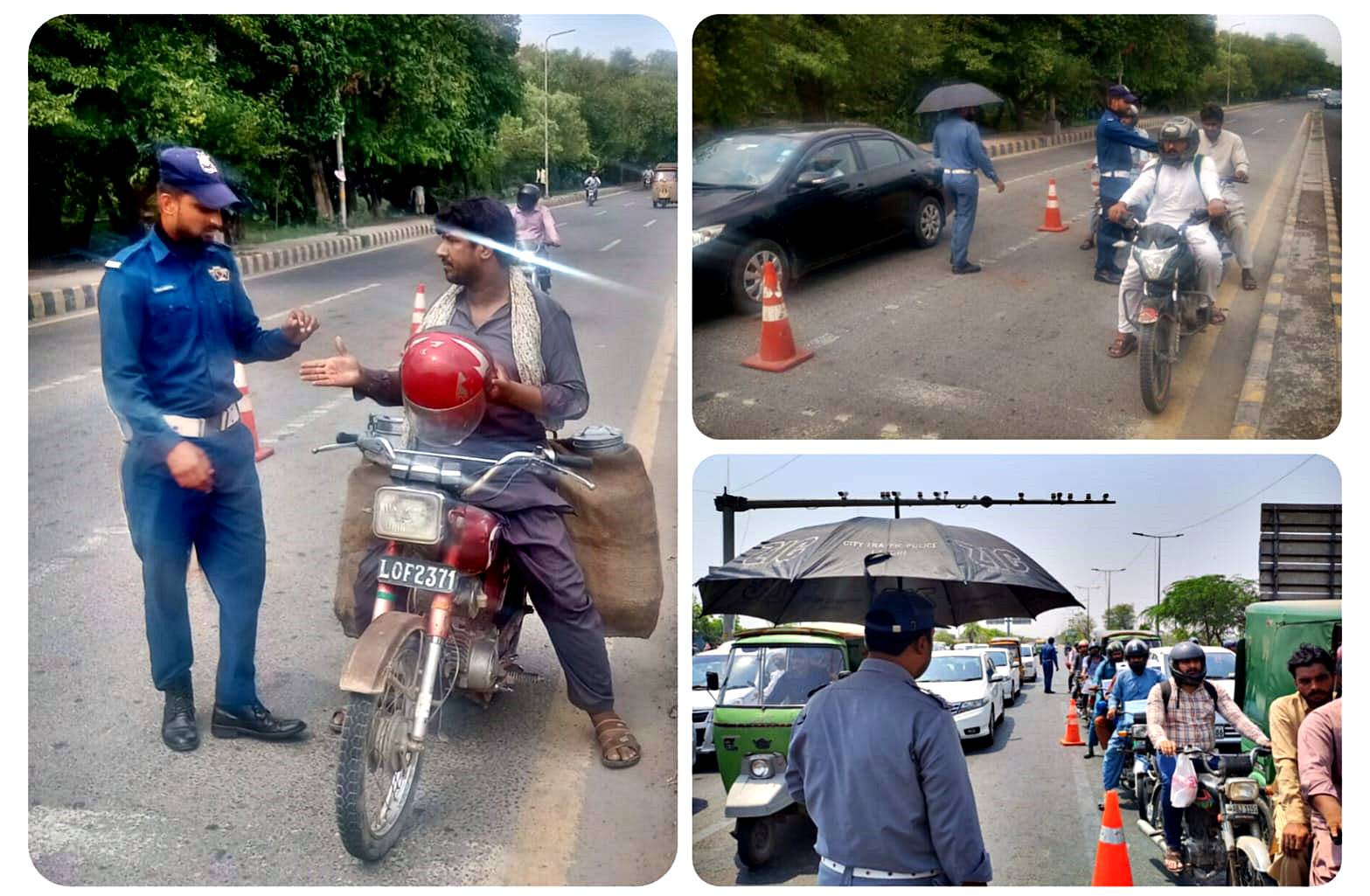 Under new rules, bikers without helmet will not be allowed to commute on Ravi Bridge, Saggian, Thokar Niaz Baig, Babu Sabu, Ada Plot, Nawaz Sharif Interchange, and 10 areas such as Harbanspura, Gajjumata, and Bhatta Chowk.